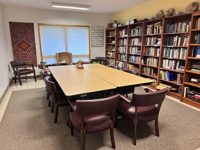 The Sasso Library is available for your meetings. It will accommodate up to 15 people around the center table. No food allowed in the library. Any food for your meeting will be located in the RE commons area, which is nearby.